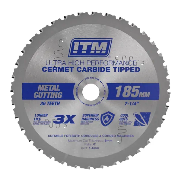 185mm Metal Cutting Blade, Cermet Carbide Tipped, 36 Teeth ITM SSBL-M1852036