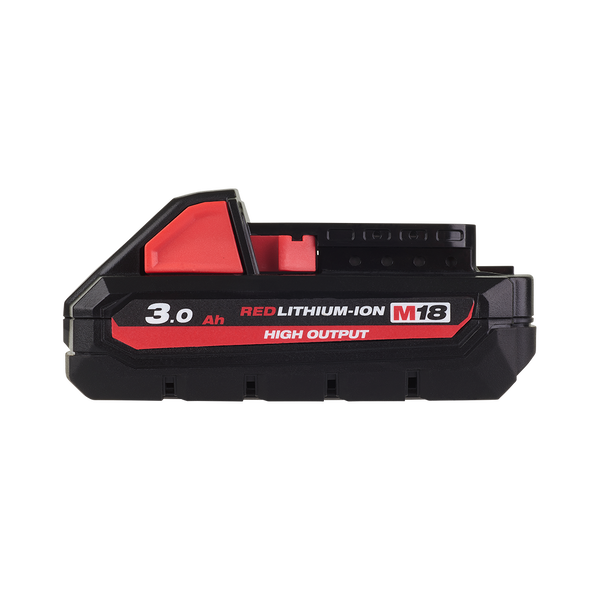 The Milwaukee M18 REDLITHIUM-ION HIGH OUTPUT 3.0Ah Battery Pack, M18HB3, provides you with 50% more power and runs 50% cooler vs the M18 REDLITHIUM-ION 2.0Ah battery pack. This increased performance of the lithium-ion battery gives you maximum power and runtime in a light and compact package. The 18V battery pack delivers fade-free power and runs substantially cooler through heavy applications, allowing you to push your cordless power tools throughout a wide range of applications. The Milwaukee M18 REDLITHIUM-ION HIGH OUTPUT 3.0Ah battery pack is fully compatible with all 150+ Milwaukee M18 solutions.