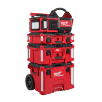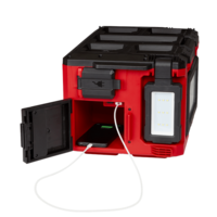 Users have the ability to manage output and runtime, with three different modes (all lights, main panel, or back/front lights), each with high, medium, and low settings for a total of nine output settings. The M18 PACKOUT Area Light/Charger can provide users up to 31 hours of runtime. For users using high mode for extended periods, the light can plugin for easy all-day use. When plugged in, the light acts as a charger of M18 batteries, while a 2.1A USB port is included on the M18 PACKOUT Area Light/Charger for charging a phone or external device. Users can store small items inside the storage compartment as well.