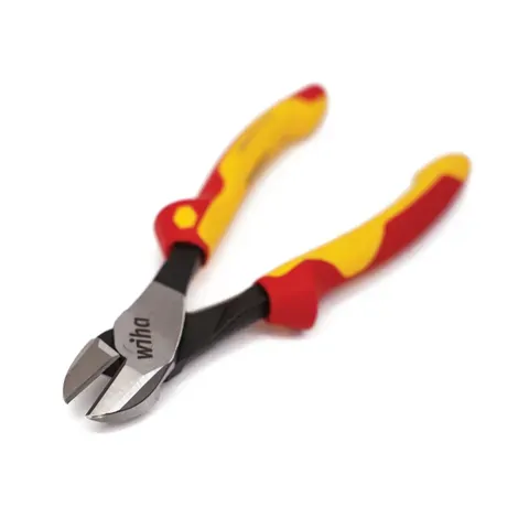 Wiha heavy-duty diagonal cutters with a two-component handle provide effortless cutting for heavy-duty use. The power joint with the dynamic joint ensures that the hand forces are optimally transferred to cutting surfaces, providing up to 40% greater cutting force. Its opening spring can be switched on and off, which allows the user to work effortlessly for long periods of time. With their semi-circular head, these powerful pliers also guarantee a clean cut edge. The ergonomically shaped plier handle ensures comfortable, fatigue-proof work. The cutting edges that are inductively hardened to approx 64 HRC and the high-quality C 70 tool steel contribute to a long tool life.