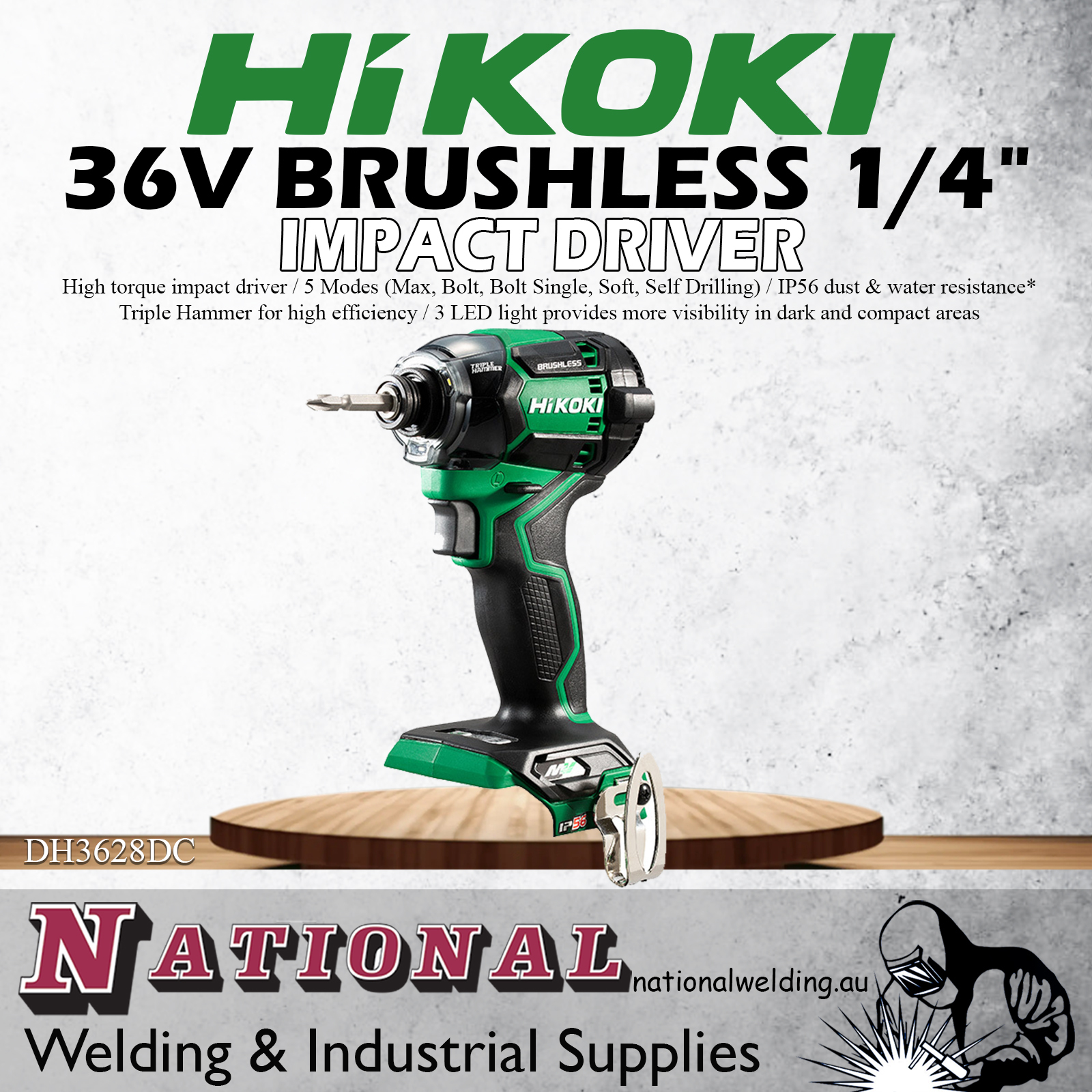 Get the job done faster and easier with HiKOKI. The 36V Brushless 1/4" impact driver WH36DC from HiKOKI has triple hammer feature which makes three impacts per rotation providing high efficiency and ease to operate, conforms to IP56 protection class ratings (dust and water resistant) and compact design which makes it easy to use and ideal for confined space applications.