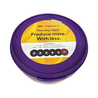 he 3M Cubitron 3 Fibre Disc Bucket features re-engineered 3M Precision-Shaped Grain — taking the legendary speed and life of 3M Cubitron Performance Abrasives to a whole new level. These product benefits include allowing for increased productivity and lower overall grinding costs vs. other fiber discs and depressed center grinding wheels when grinding mild or carbon steels.