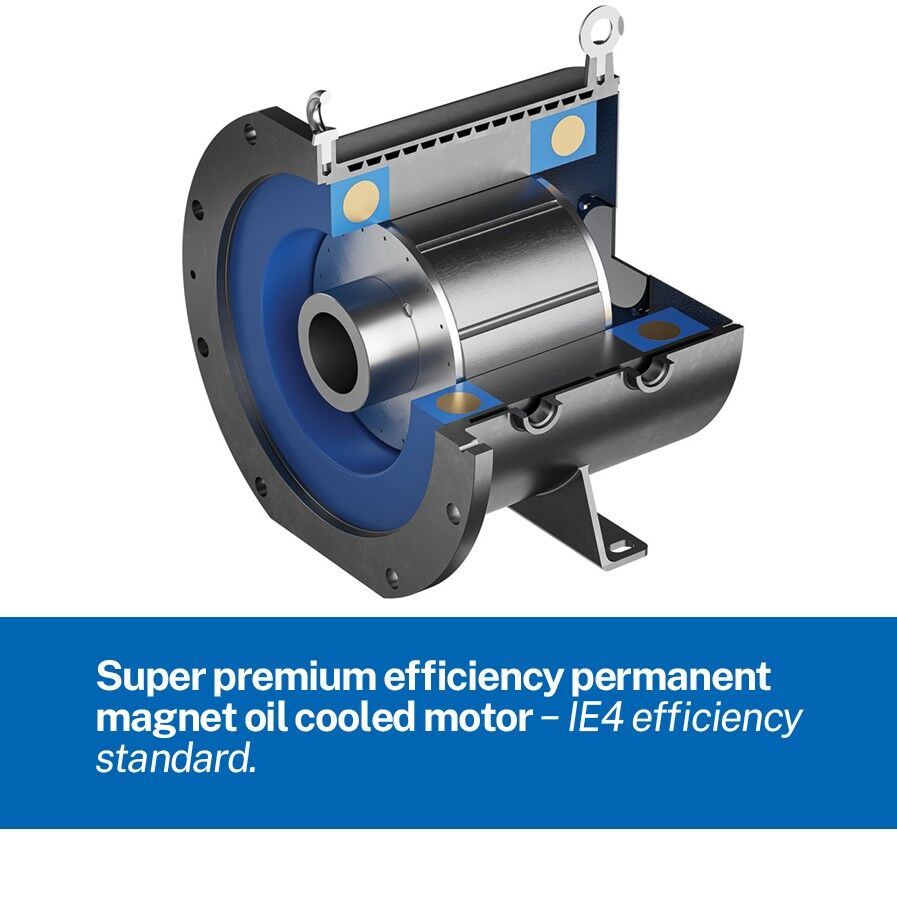 - Super Premium Efficiency oil cooled Permanent Magnet Electric motor (IE4 equivalent)