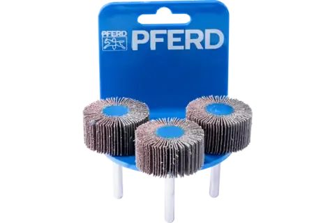On mounted flap wheels, the flaps made of coated abrasive are arranged radially around the tool axis in a fan-type structure. Their flexibility enables them to adapt perfectly to the contours of the workpiece. The abrasive grain is embedded in the sturdy, flexible cloth backing material by means of a resinoid band. In ISO 3919, mounted flap wheels are designated as "flap wheels with shaft". For general-purpose applications from coarse to fine grinding.