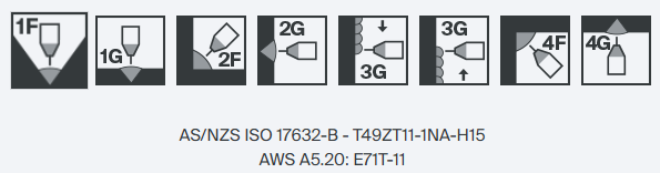 AS/NZS ISO 17632-B - T49ZT11-1NA-H15 AWS A5.20: E71T-11