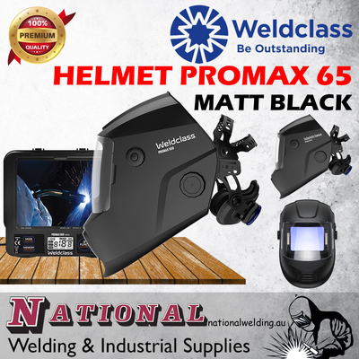 Protection meets perfection: For those who take a bit more pride in their work, there's the PROMAX 650! One of the new generation helmets from Weldclass, the 650 offers: a leading 7-year warranty offer, Advanced digital controls, Super-size 89cm2 'Landscape' view, Ultra-crisp V1 (1/1/1/1) rated optics, External grind mode push-button, Memory function, Cut mode, Gradient mode, Wrap-a-round headgear and more. Plus the comfort, reliability and great value that Weldclass helmets have delivered for decades.