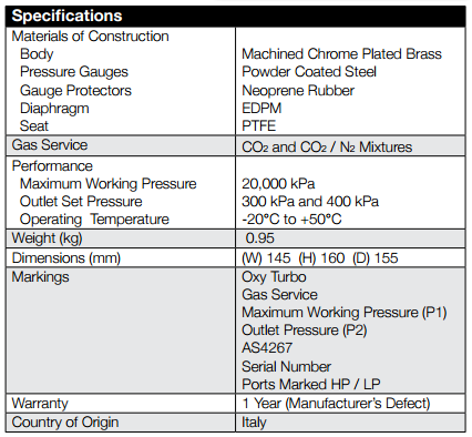 Beverage Regulator 1 Stage Rear Entry H/W AS5034 In 20,000kPa