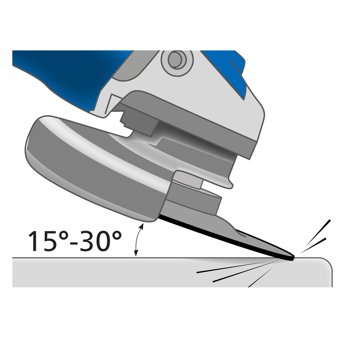 - Significantly more ergonomic than a grinding wheel: Noise, vibrations, and dust are significantly reduced. A considerably superior surface quality is also produced.