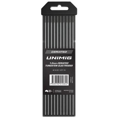 Ceriated Tungsten Electrodes 1.0mm Unimig PTR0003-10 Pack of 10