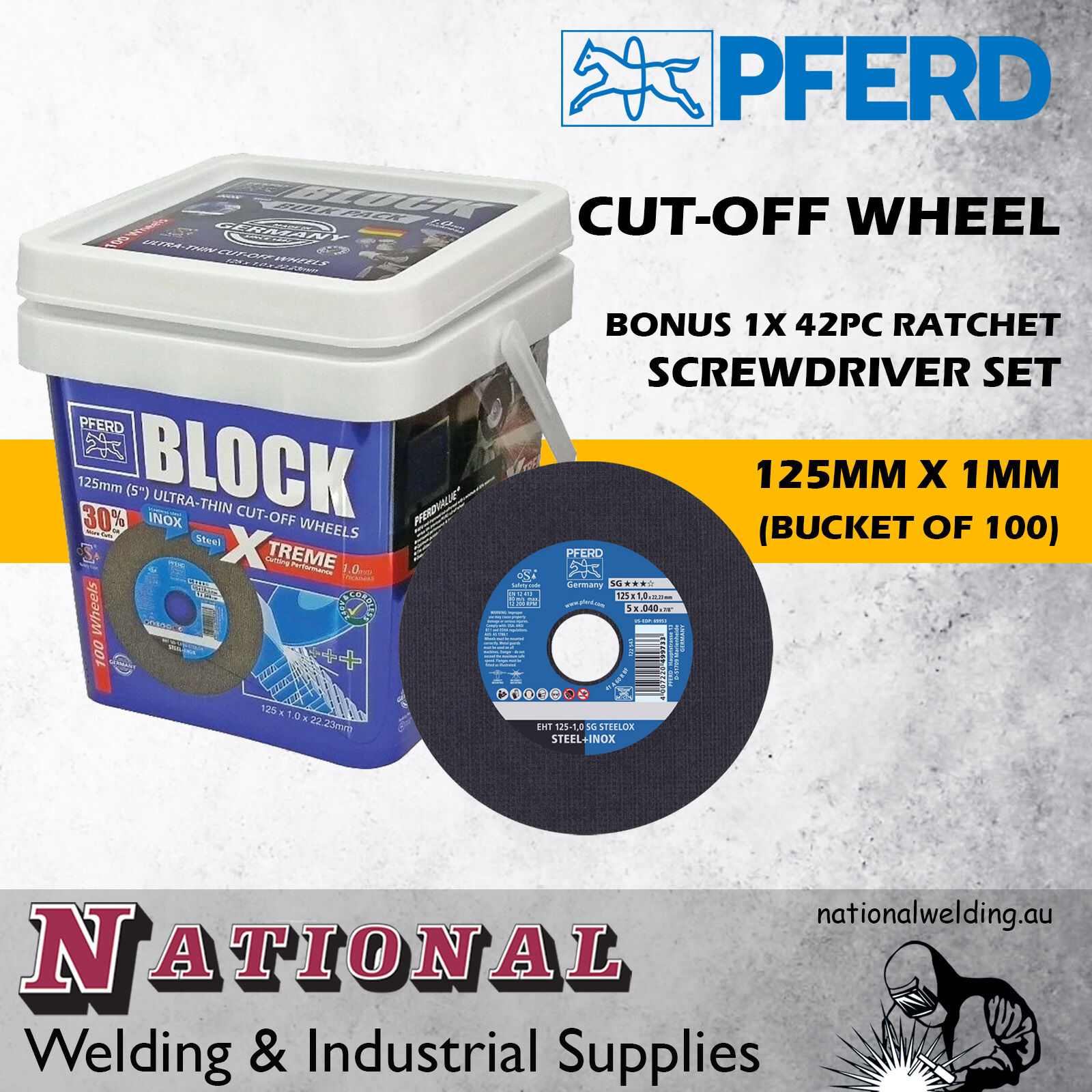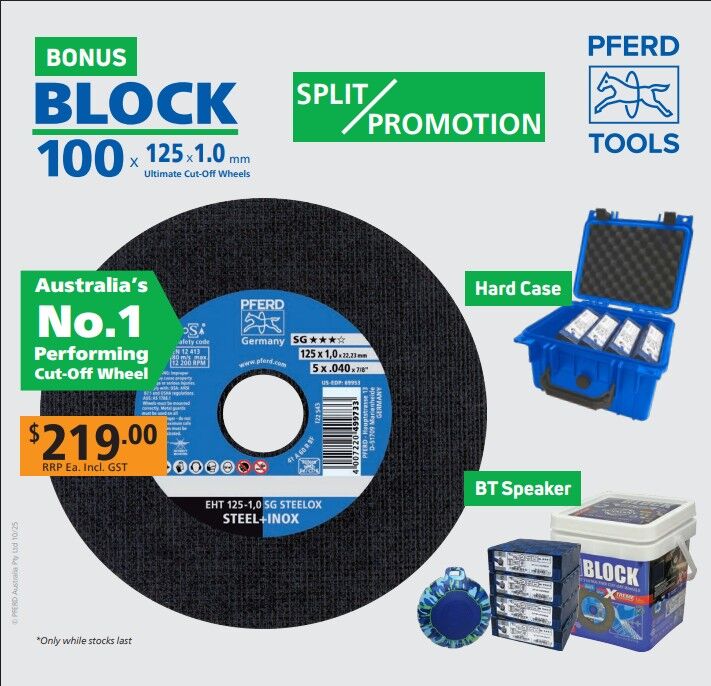 - New and improved cut-off wheel with a minimum of 30% more cuts versus the previous PFERD cut-off wheel