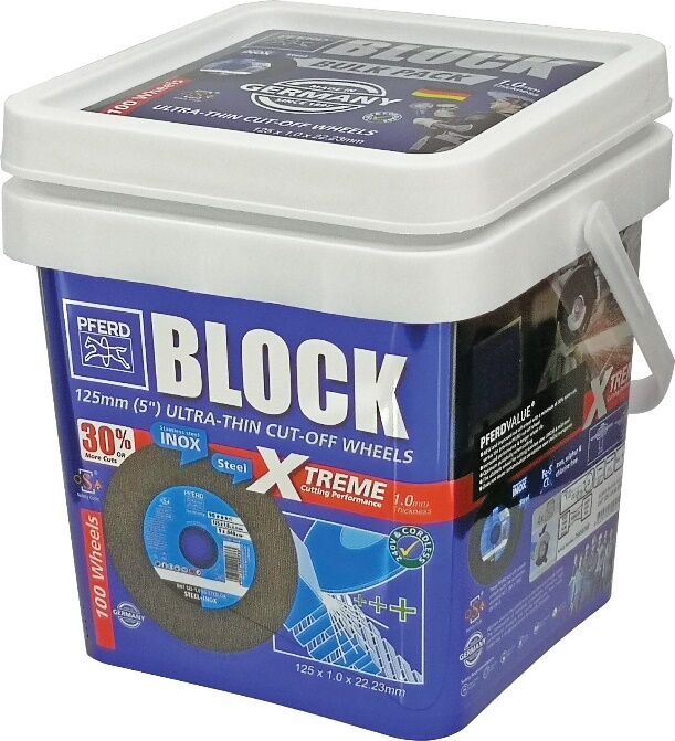 PFERD 75650763 (75650553) 100-Pack Bucket 125mm (5") x 1mm Ultra Thin Block Inox Metal Cutting Wheels