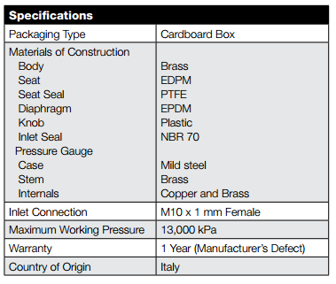 Disposable Beverage Regulator Minor CO2 Food Grade M10x1 - 1/4" P/Fit In 13,000kPa Out 400kPa - RIMCD4P