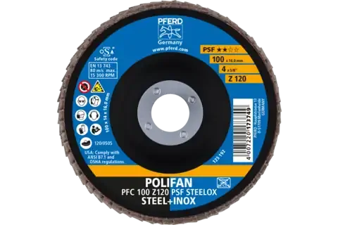 Flap Disc Polifan 100mm 4" 120G GP Zirconia Inox Pferd 67769100