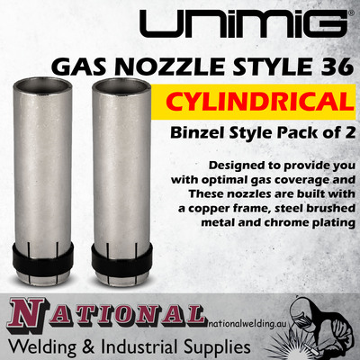 Gas Nozzle Cylindrical Binzel Style 36 Unimig PGN36CYL Pack of 2