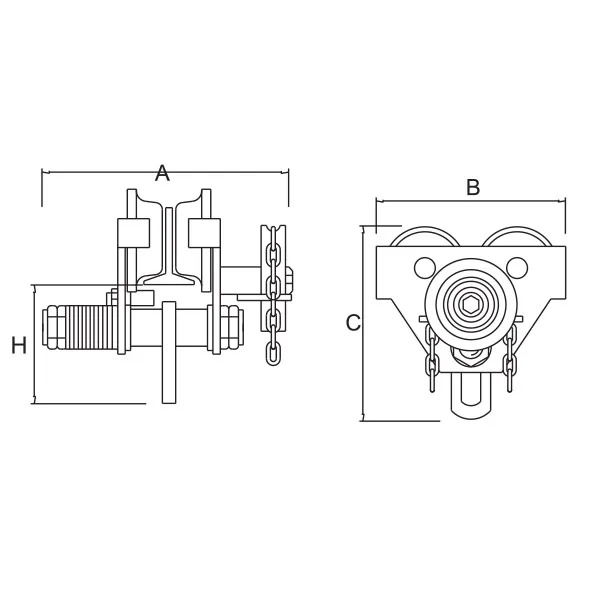 Geared Girder Trolley, 1 Tonne, 64-203mm Beam Width ITM TM9102-01000