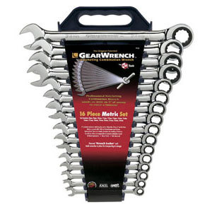 This GearWrench Combination Metric Ratchet Wrench 16 Piece Set is designed with the small ratcheting box end head to enable access to tight spots where a ratchet won't fit.