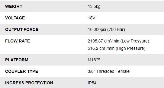 (1) M18 HUP700R M18™ FORCE LOGIC™ 10,000 PSI Hydraulic Pump [M18HUP700R-0]