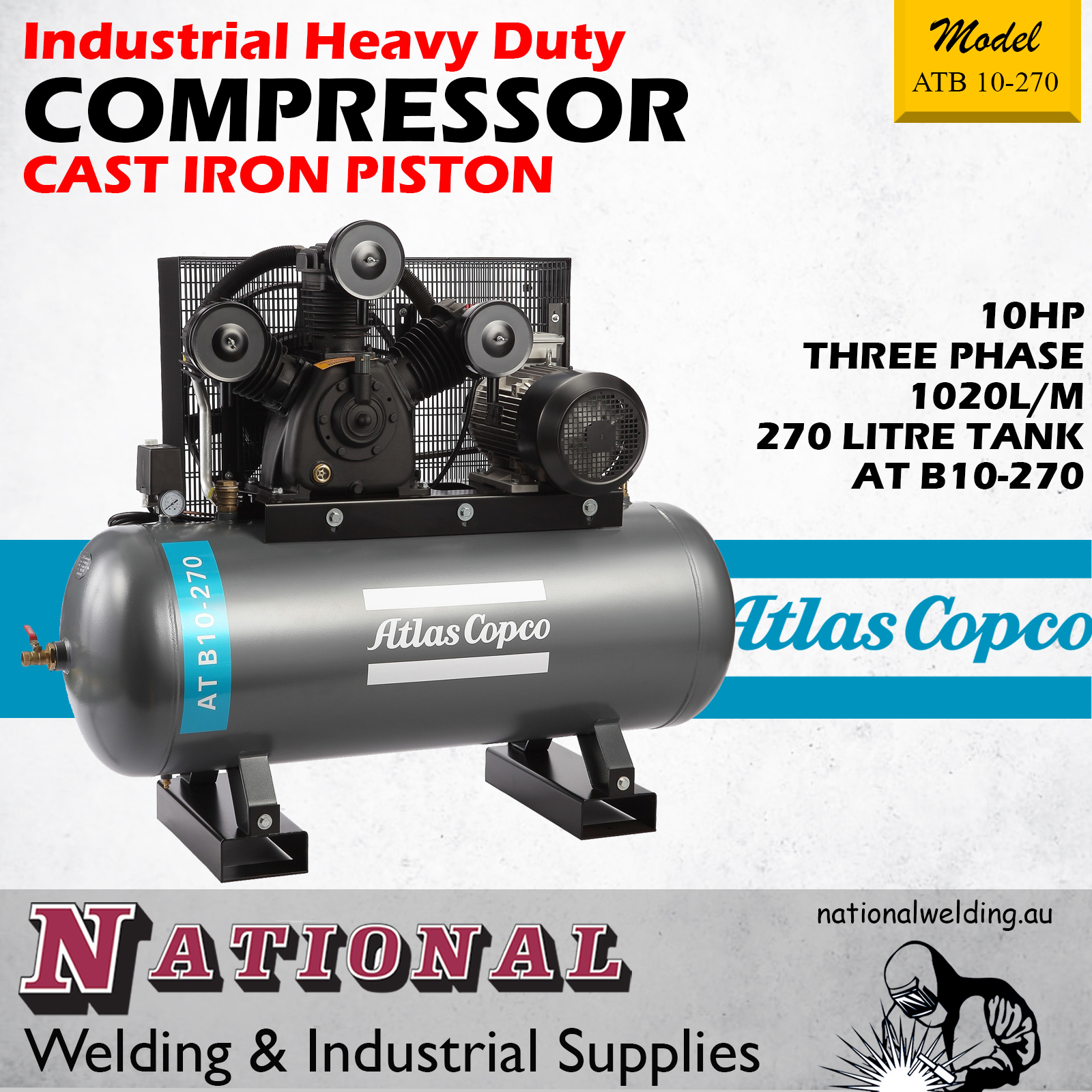 Three Phase Compressor Industrial Heavy Duty Cast Iron Piston FAD 1020L/m 10hp 270 Litre Tank AT B10-270
