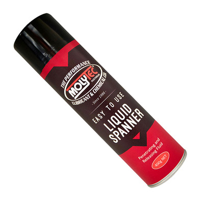 Molytec liquid spanner. A high strength, heavy-duty penetrating and releasing fluid for use on heavily corroded nuts, bolts and machinery parts. Liquid spanner works quickly to penetrate and loosen assemblies that are contaminated with rust, tar, grease and carbon deposits.