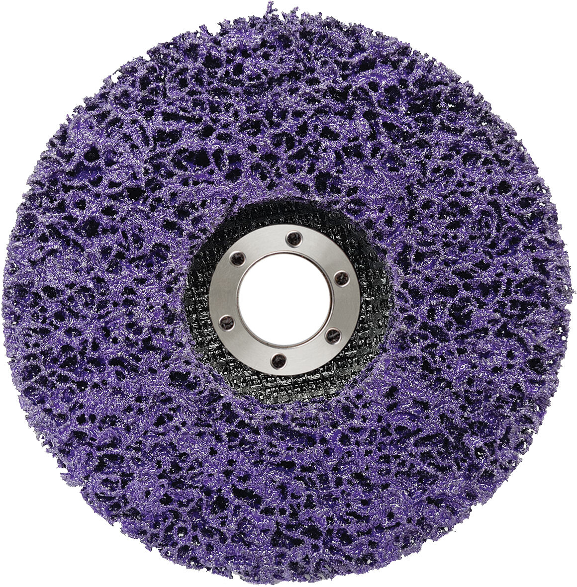 The non-woven cleaning material is glued onto a glass-fabric base. This makes POLICLEAN discs suitable for use in face-down grinding. For coarse cleaning work, e.g., removing paint, scale, heat discolouration, rust, and adhesive residue.