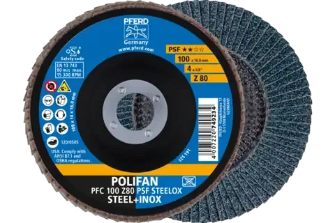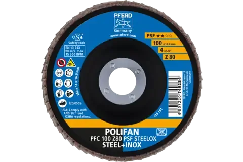 Polifan Flap Disc 100mm 4" 80G GP Zirconia Inox Pferd 67768100