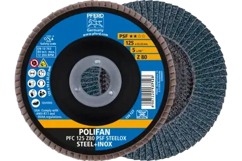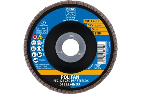 Polifan Flap Disc 125mm 5" 80G GP Zirconia Inox Pferd 67770128-10 Pack of 10