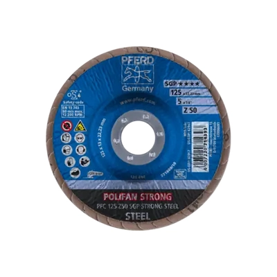 Polifan Flap Disc PFC 125 x 22.23mm Conical Z50 Zirconia SGP Strong Steel Pferd 67788125-5 Pack of 5