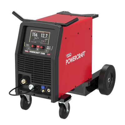 - Comes READY-TO-WELD™ with POWERCRAFT® 250M 4-in-1 Power Source, MIG gun, TIG Torch, electrode holder, work clamp, cables, drive rolls, contact tip and flow meter.