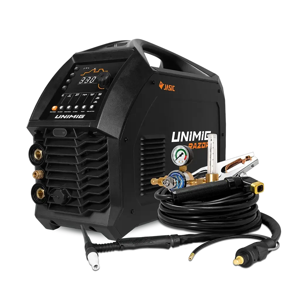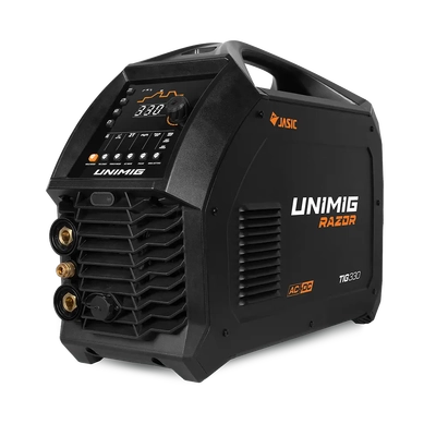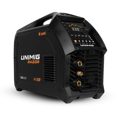 The UNIMIG RAZOR TIG 330 AC/DC (model U11021) is a professional-grade, inverter-based TIG/MMA welding machine designed for high-end fabrication, marine and industrial engineering applications. It features full AC and DC TIG capability with advanced waveform control, making it ideal for aluminium, stainless steel, mild steel, titanium and exotic alloys. With its mixed AC/DC mode, foot-pedal readiness, job memory function, and generator compatibility, this unit offers serious capability for trades, fabrication shops, boat and marine build-outs, and heavy-duty TIG requirements.