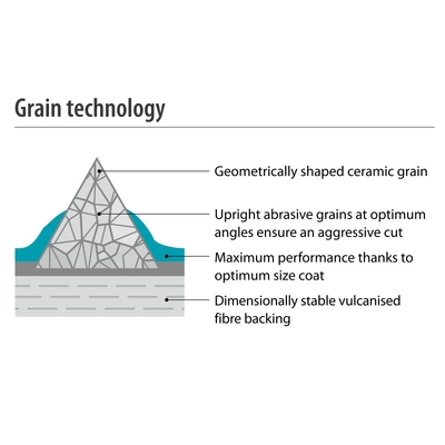 - Double the stock removal compared to conventional ceramic grain abrasives