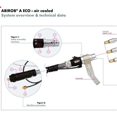 The ABIROB® A ECO product line – groundbreaking in its design, trend-setting in standardisation – guarantees consistent precision and an economic welding process thanks to its robust construction and simple handling. Thanks to the innovative Interlock mechanism, the torch system allows a simple and fast change of cable assemblies while the TCP remains the same.