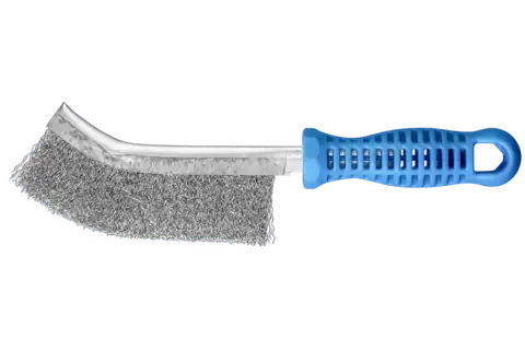 Pferd tools brushes for manual applications come in a wide range of versions. In order to fulfil the particular requirements for working with stainless steel (INOX), Pferd tool uses wire quality 1.4310/1.4301 (V2A) for all INOX brushes. Practical experience from industry has shown that this offers very good corrosion resistance with an optimum tool life. All pferd tool brushes with INOX filaments are colour-coded in blue and are suitable for use on all stainless steels (INOX), such as V4A. The wire quality 1.4310/1.4301 tends to become ferromagnetic in the case of cold working; i.e., it can be attracted using magnets. The reason for this is a change in the microstructure caused by deformation (e.g., during the wire drawing process). This does not have any impact on the quality and corrosion resistance of the INOX filament. The filament is still resistant to corrosion. Stainless steel wire (INOX) withstands temperatures up to 450 °C.