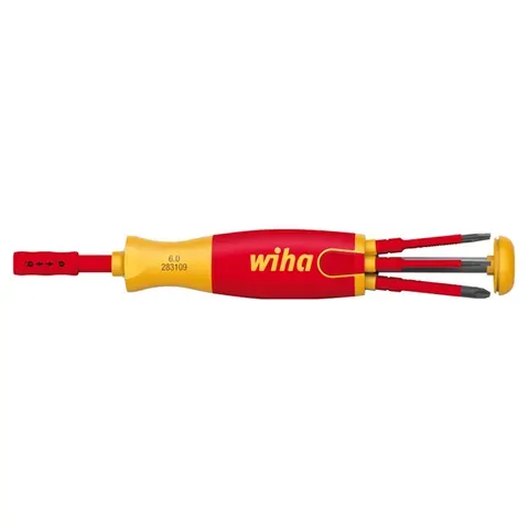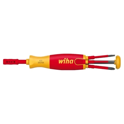 Screwdriver With Bit Magazine Liftup Electric, Phillips, PlusMinus/Pozidriv, Slotted With 6 Slimbits VDE 1000V Insulated WIHA WH-38613