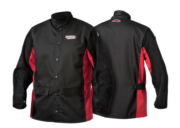 Split cow-hide sleeve with FR material chest offers the welder extra protection when MIG and Stick welding. Coats offer extra length depending on the size from 31, 32, 33, 33, 34, to 35 for sizes M, L, XL, XXL, XXXL. Flip up Velcro collar and extra lined flap behind jacket snaps for extra protection. Two horizontal pockets with Velcro for storage.