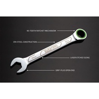 The ratcheting mechanism has 90 teeth, allowing for a 4-degree swing arc of movement for ease of use in tight spaces and incorporates the advanced Grip-Plus jaw design for increased grip on fasteners.