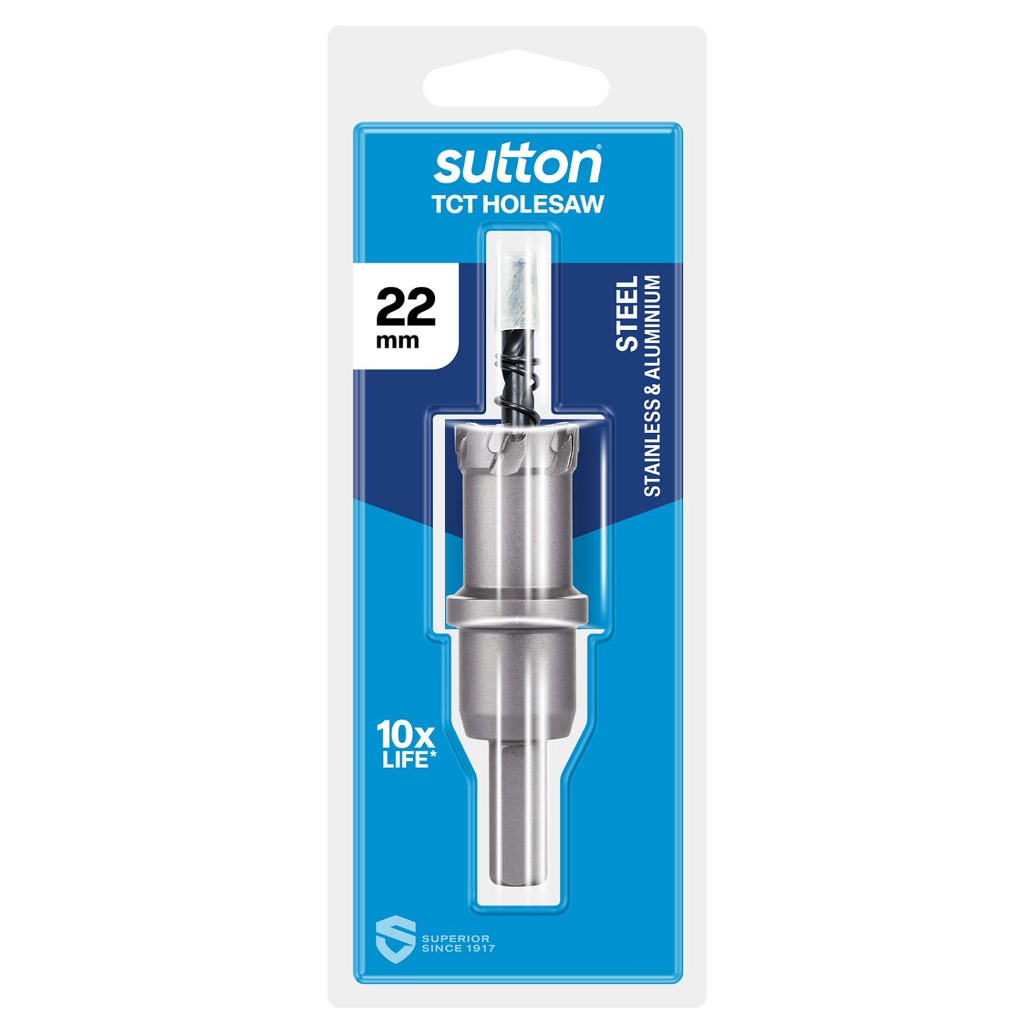 - Sutton Tools TCT Holesaws are industrial quality, designed for 5mm cutting depth. They can be used for machine or hand drilling, and are suited to cut steel, stainless steel, aluminium, fibreglass, chipboard, plastic, and other abrasive materials.