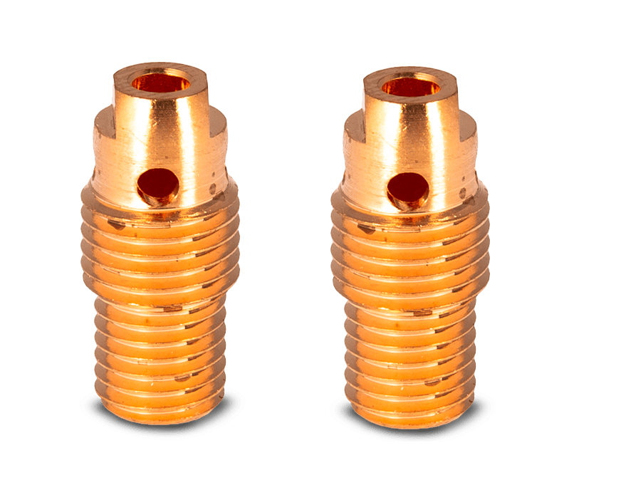 UNIMIG TIG Torch Collet Bodies are made from high-grade tellurium copper giving the collet body longer consumable life under extreme heat, they also hold your tungsten electrode securely even after extended periods of time.