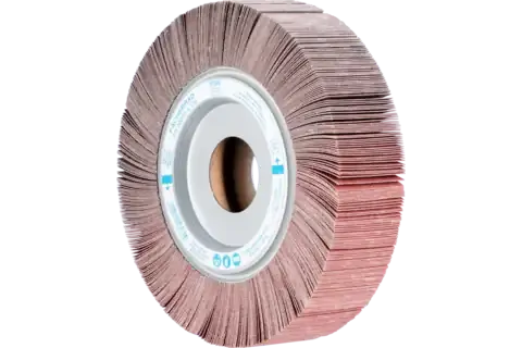 On unmounted flap wheels, the flaps made of coated abrasive are arranged radially around the tool axis in a fan-type structure. Their flexibility enables them to adapt perfectly to the contours of the workpiece. The abrasive grain is embedded in the sturdy, flexible cloth backing material by means of a resinoid bond.