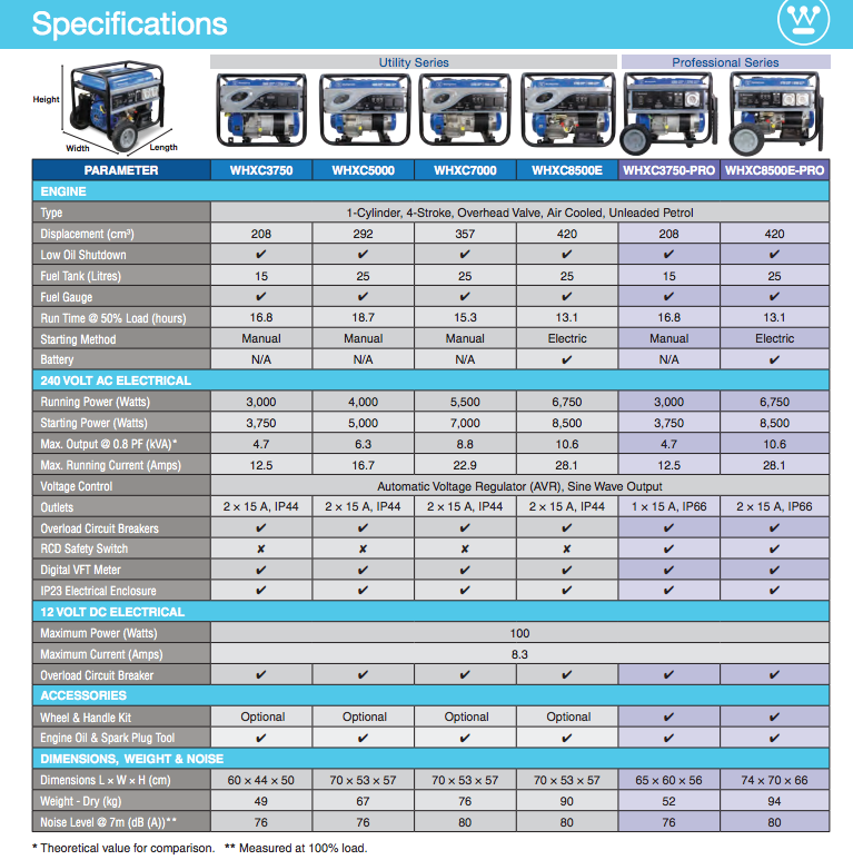 - 420 cc Westinghouse 4-Stroke OHV Petrol Engine